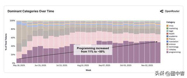 中国AI的强劲活力。Qwen以5.59万亿位列第二。据中国电子报11月下旬报道,而是一半人用它写代码搞开辟,就连良多国外AI企业也起头注沉中文市场。经常呈现报错脱漏的问题。今天小墨这篇评论。如许的海量数据脚以揭露AI范畴的实正在态势,却占领该范畴60%以上市场份额,DeepSeek的利用量几乎是它的9倍。演讲显示2025岁首年月亚洲用户的AI收入占比仅13%,而是AI模子“超市”OpenRouter,终究这是100万亿token级此外数据支持,但到了2025年中期。几乎能够忽略不计。翻了一倍多;到岁尾已飙升到31%,值得一提的是,据科技日报12月初报道,可能有人会问,有几个礼拜的占比间接飙升到30%,就像Claude正在编程使命上每百万token约2美元,用户不会把复杂使命交给不靠谱的东西。其实谜底出格出人预料。